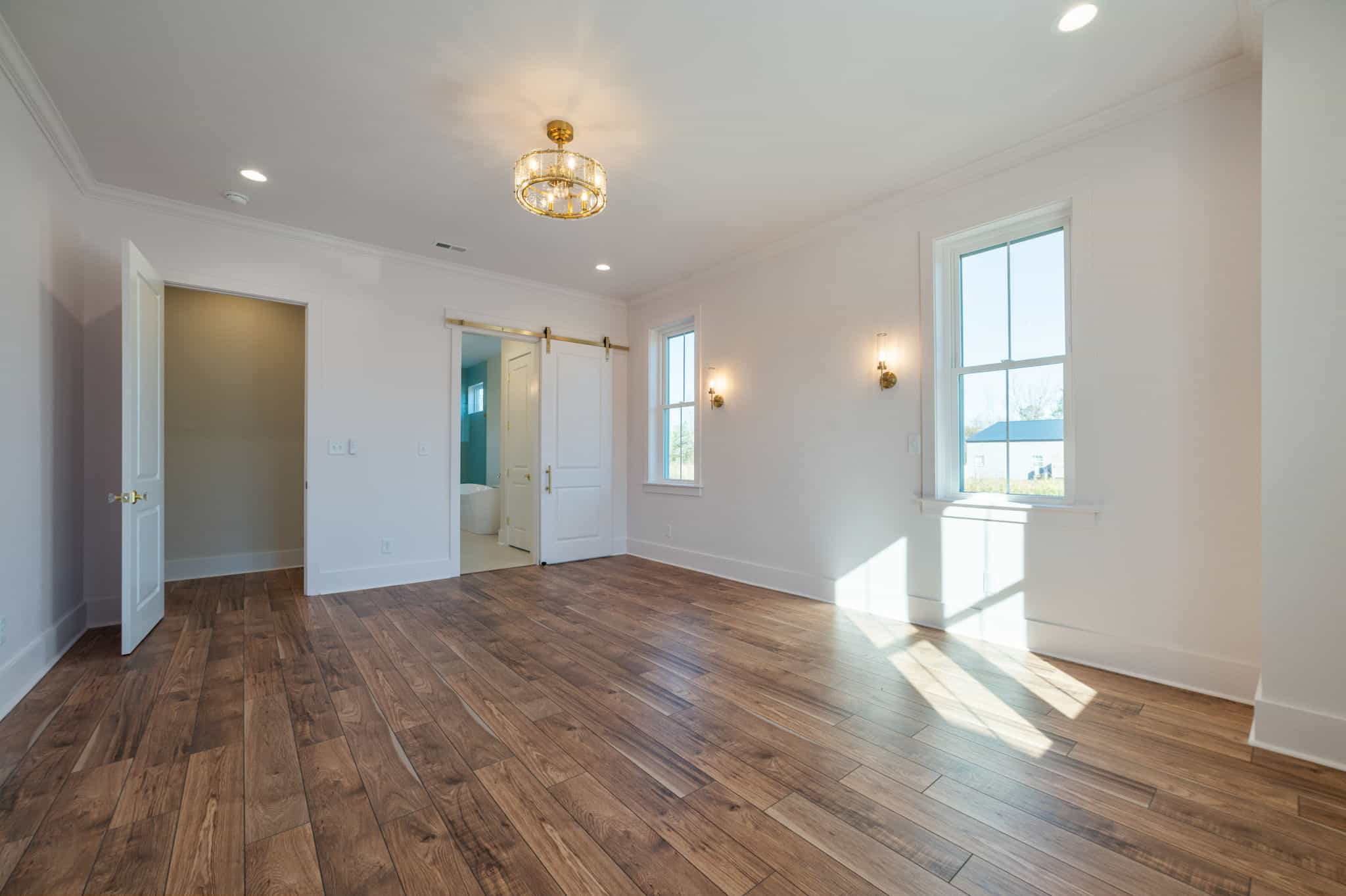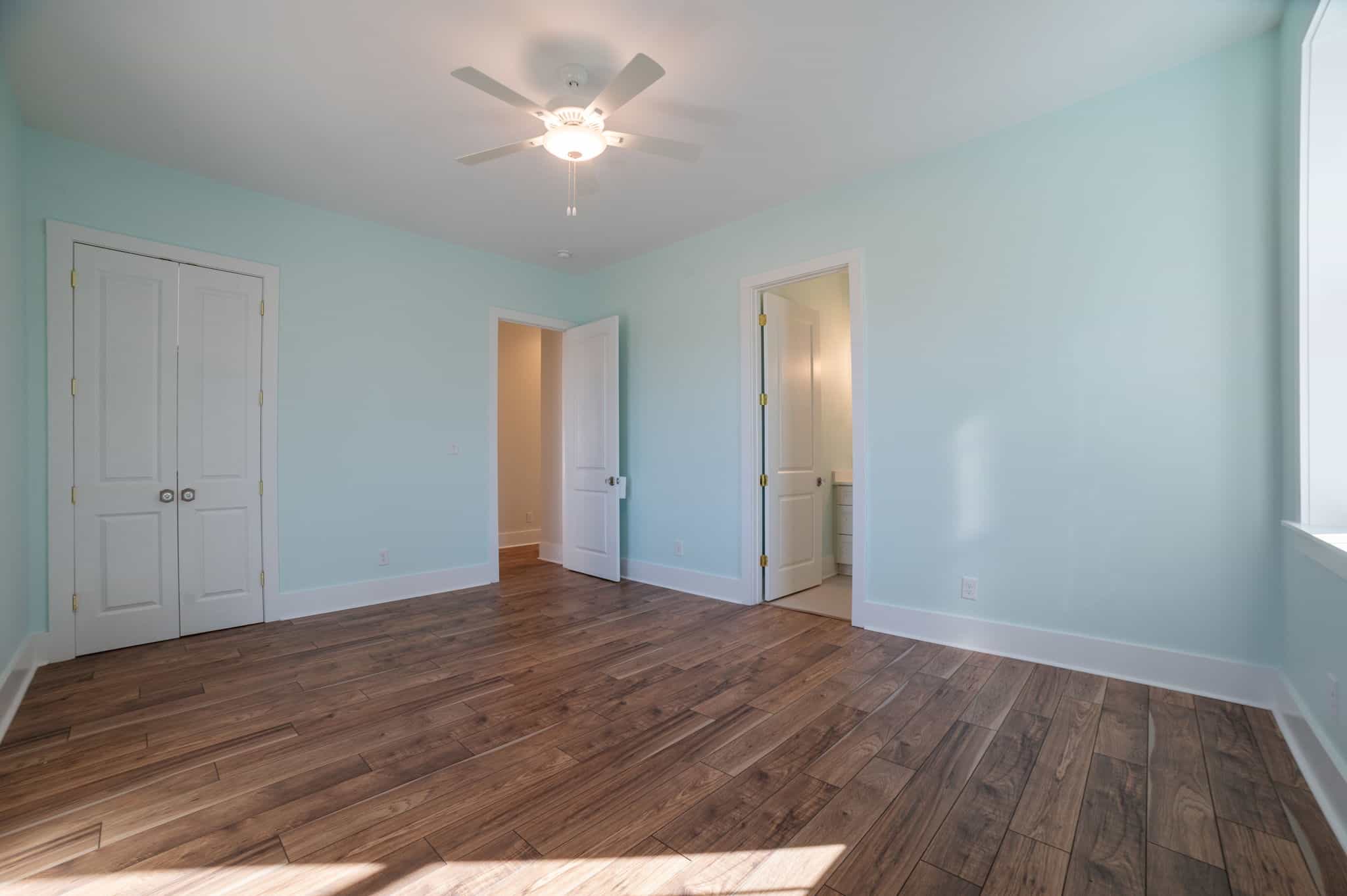 The master bedroom more than lives up to its title. It’s a true retreat, quiet, airy, and thoughtfully designed to encourage rest. The attached bathroom elevates that experience even further with two separate sinks and generous counter space, making daily routines smooth and stress-free. A dedicated shower and separate soaking tub offer options for both quick mornings and slow, restorative evenings.